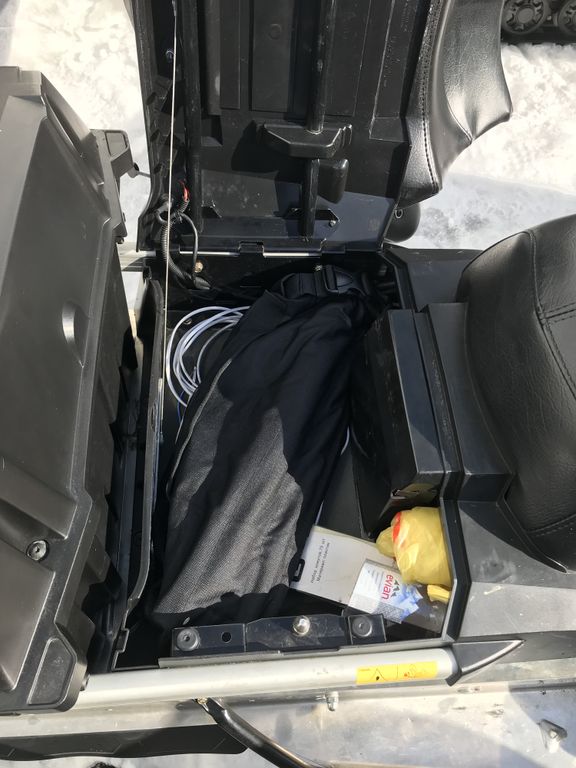 Можно разместить под сиденьем снегохода.