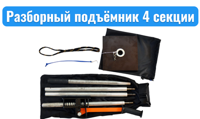 Усиленный разборный подъемник для снегохода 4-х секционный с чехлом для хранения и перевозки.