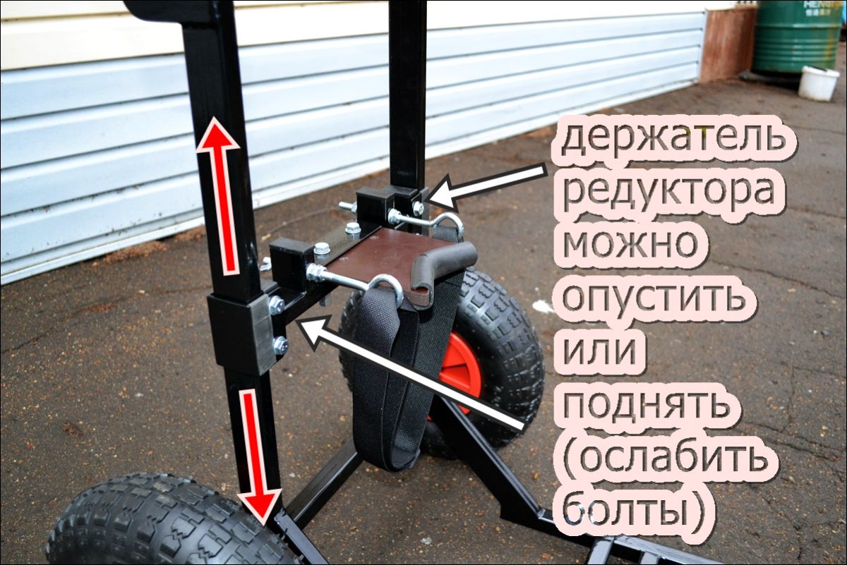 Тележка для перевозки средних и тяжелых моторов 9 л.с. - 20 л.с. с наличием трубки под дистанцию.