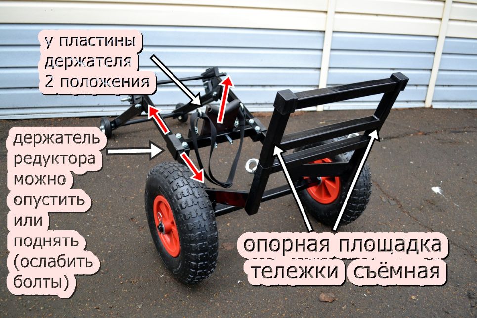 - большой клиренс тележки за счет трубы в 45 градусов между горизонтальной и вертикальной стойками тележки.