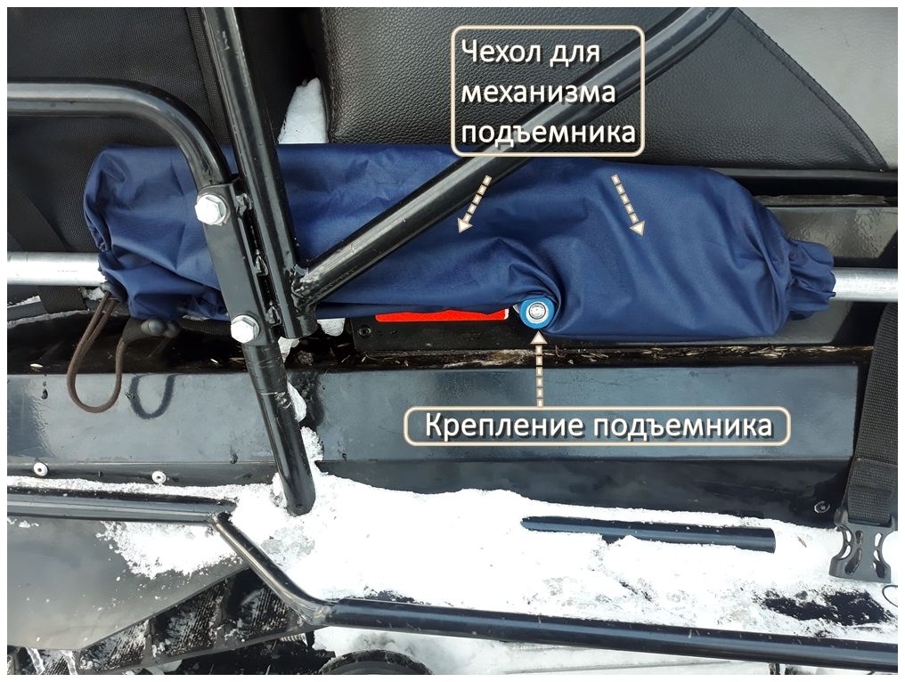 8 - Два чехла ( для опорной площадки и механизма подъемника).Сшиты из водонепроницаемой ткани для защиты механизма подъемника.Видеоинструкция по установке защитного чехла