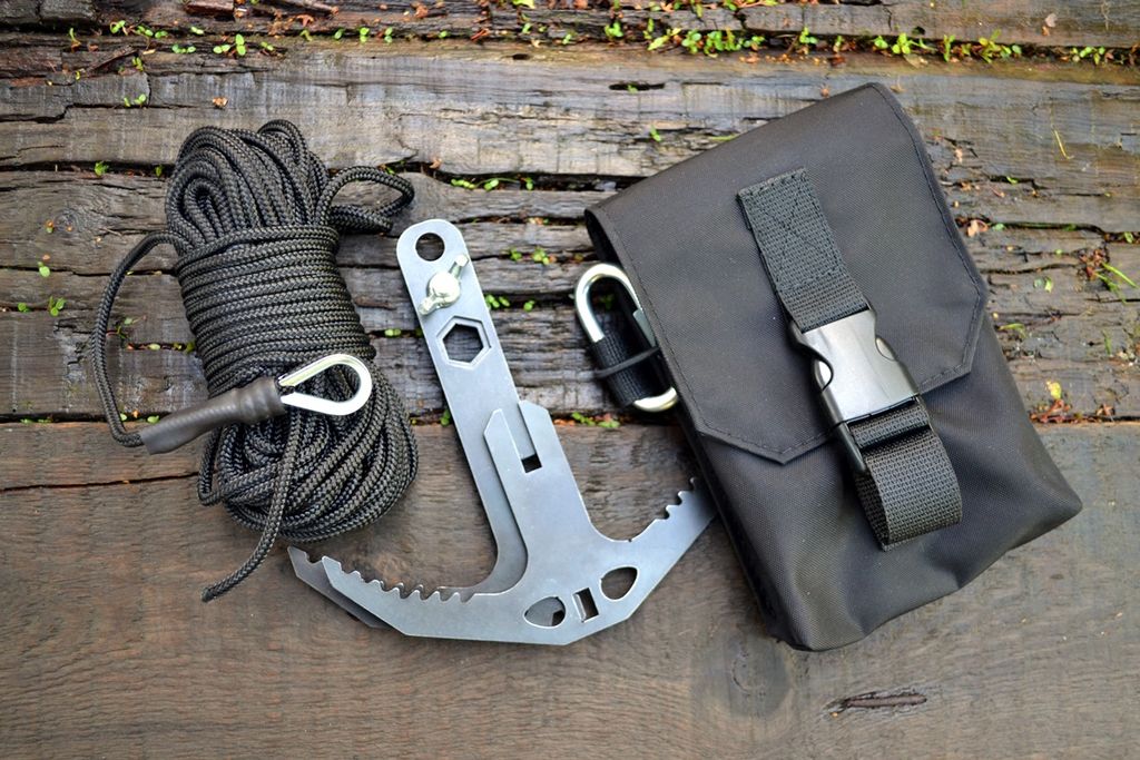 Крюк кошка имеет складную конструкцию, собирается очень быстро и имеет дополнительные вырезы (шестигранники) под болт или гайку для откручивания/закручивания в походных условиях.