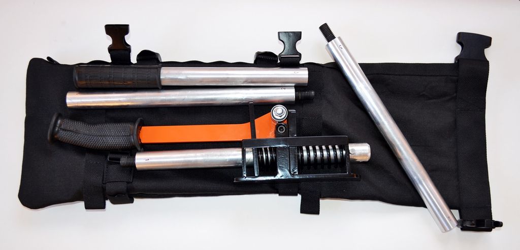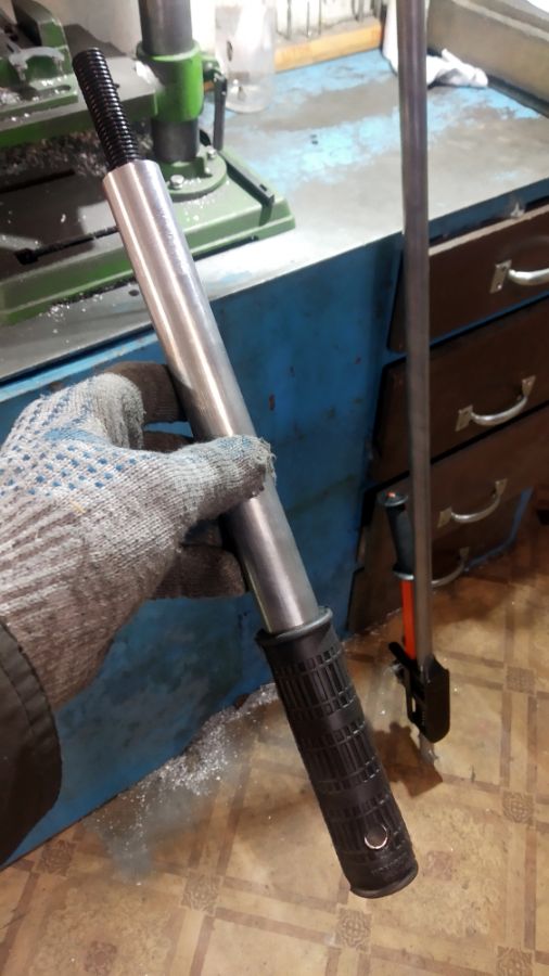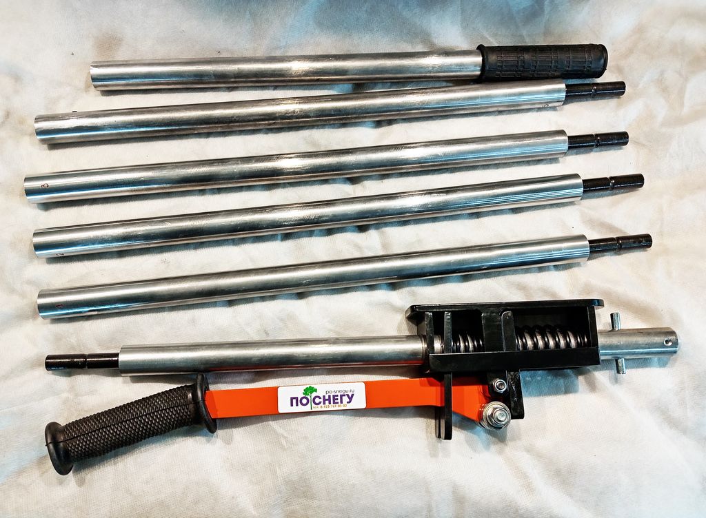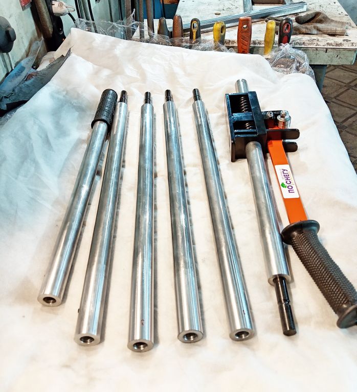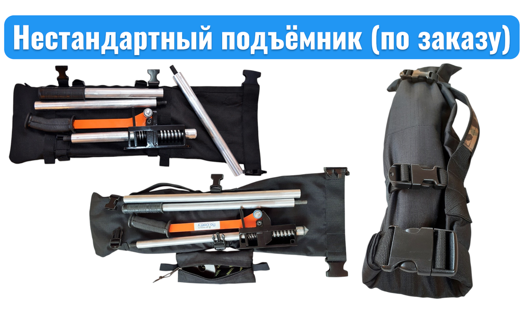 Части скручиваются по резьбе за счет твердосплавной резьбовой втулки.После работы подъемника, дополнительная часть убирается в чехол с опорной площадкой.