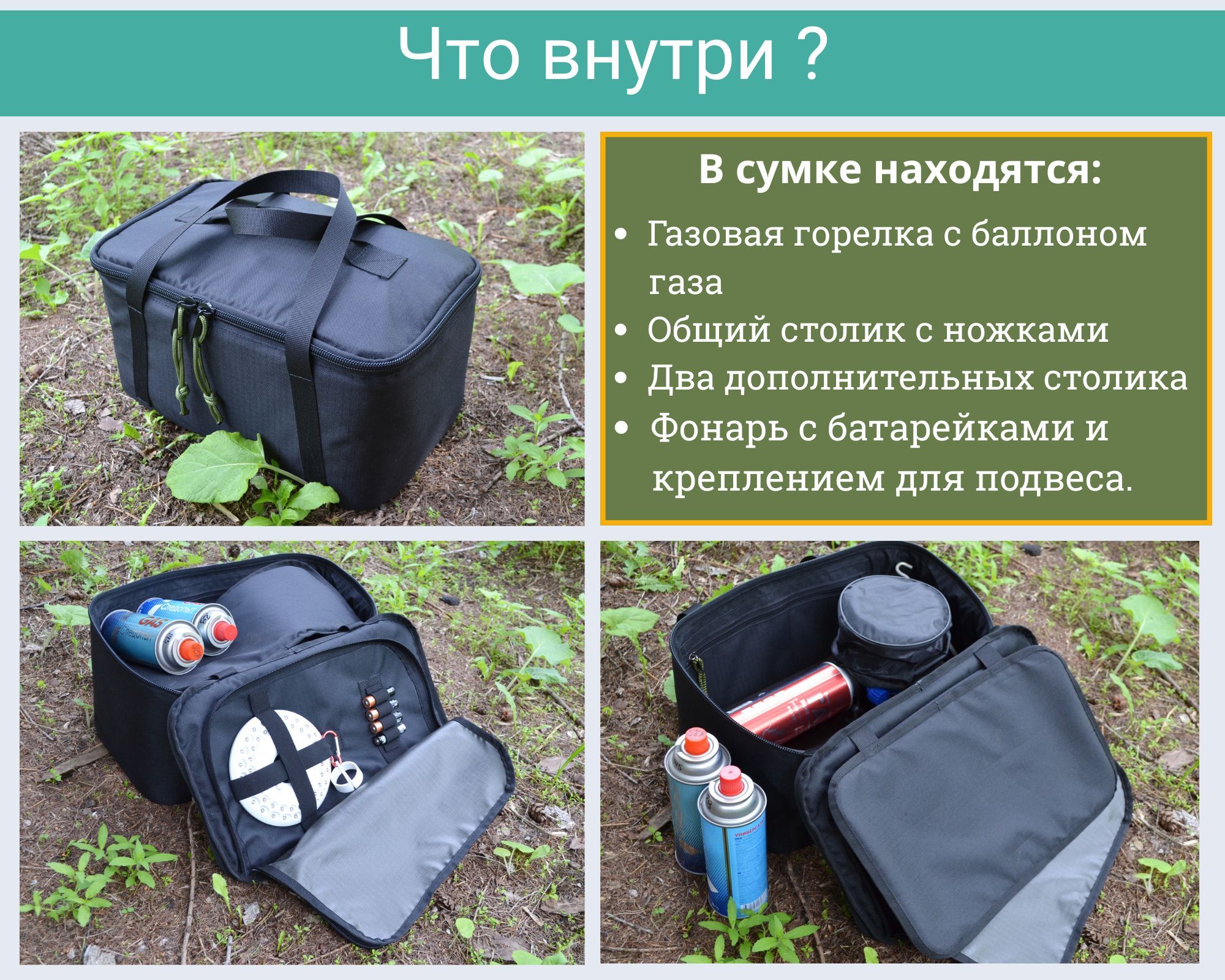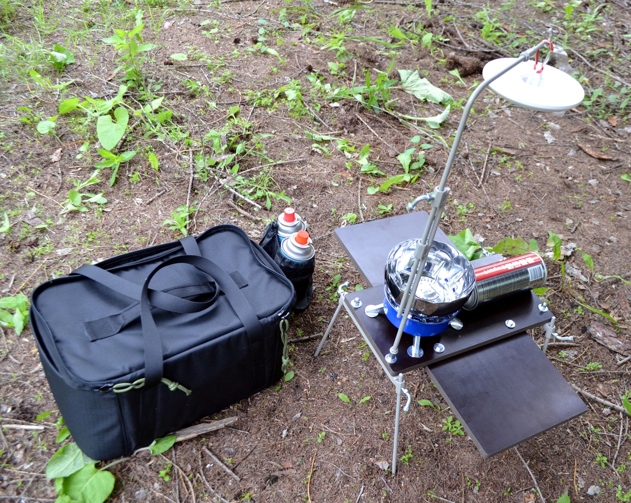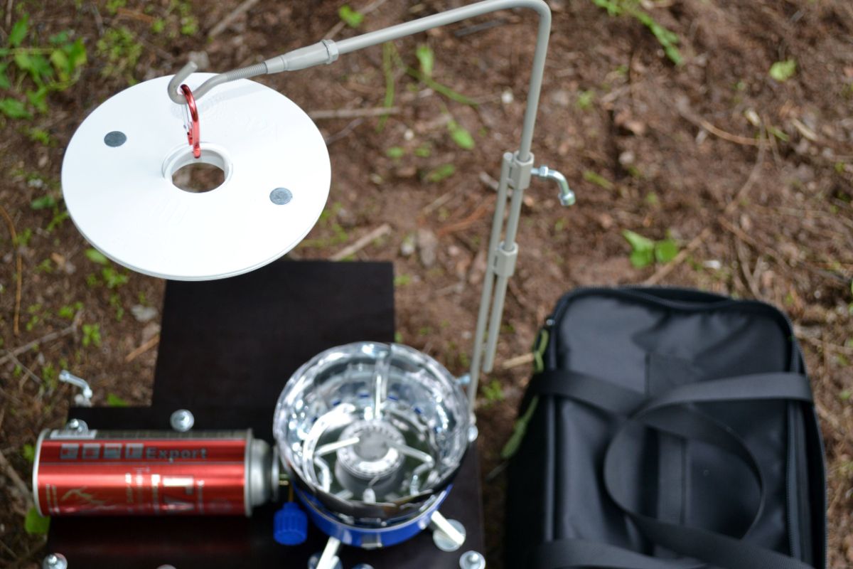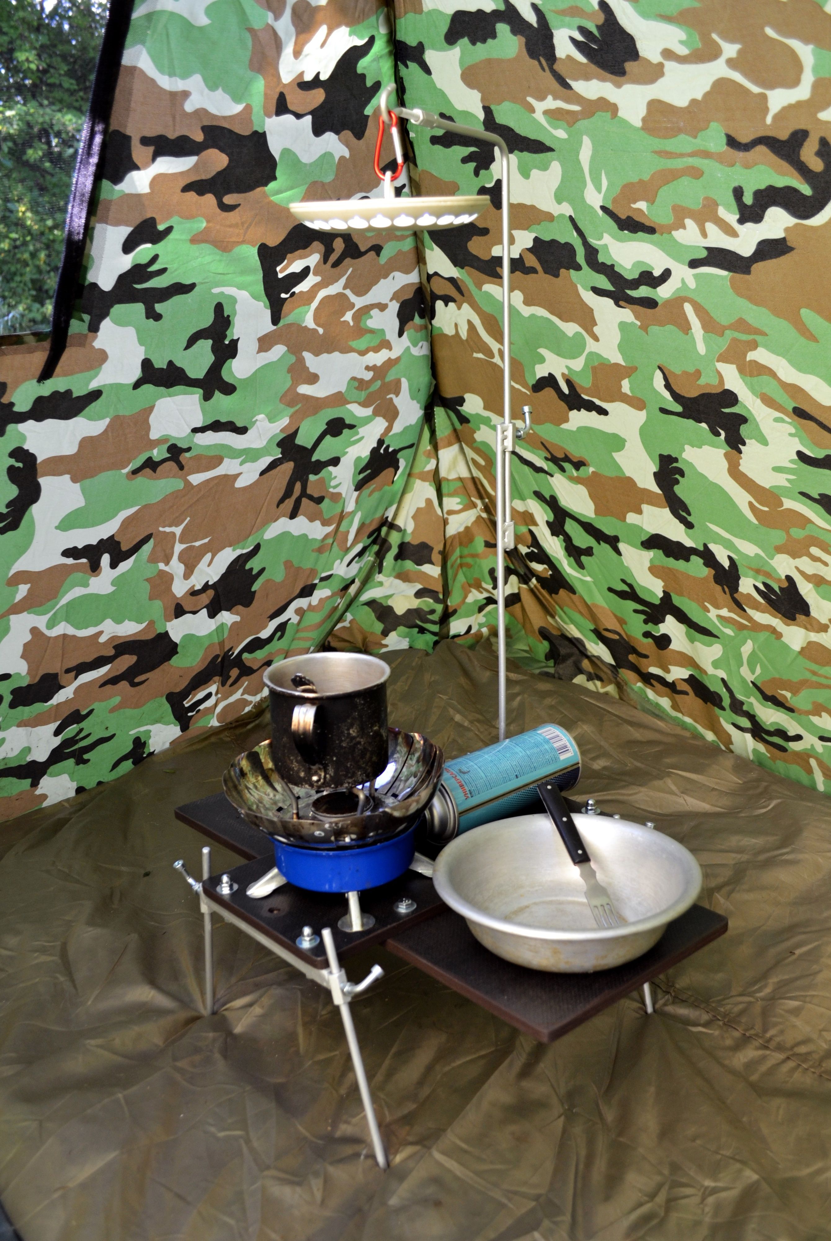 - раскладной столик под горелку с регулируемыми ножками по высоте.